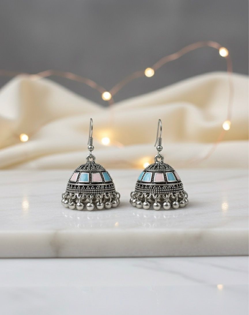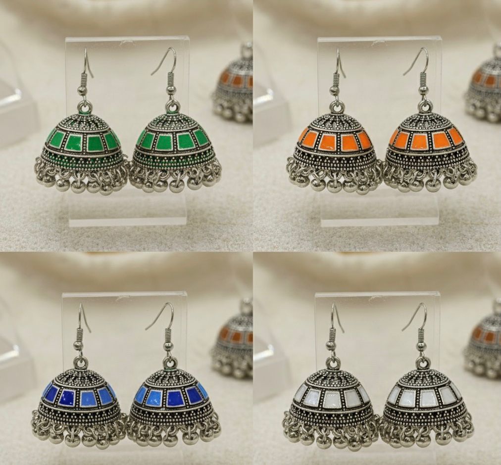 Elevate your ethnic ensemble with these vibrant desi jhumkian, a timeless accessory that captures the essence of traditional craftsmanship. Each pair features bold, saturated hues that complement both casual and formal wear, making them versatile additions to your jewelry collection. The intricate design reflects authentic cultural artistry, while the lightweight construction ensures comfortable all-day wear. Perfect for weddings, festivals, or everyday elegance, these jhumkian bring movement and grace to any outfit. Celebrate your heritage with accessories that honor tradition while making a contemporary statement.